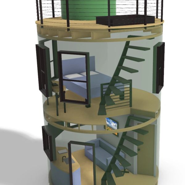 Spec tank homes are typically built from 400bbl cylindrical fracking tanks that are 13'-6" in diameter and 20' tall. The benefits to a spec home are: a resonable upfront price, quick turnaround time, and expertise in build process. We are always willing to work with clients on change orders to modify your Tank Home to suit your needs.